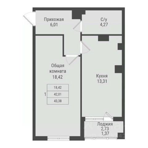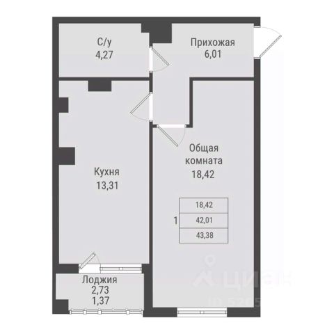 Продаётся 1-комнатная квартира в строящемся доме (дом 2, этап 4), срок сдачи: II-кв. 2030, общей площадью 43.38 кв.м., на 7 этаже. Новый жилой комплекс от Специализированного застройщика "ПАРК ПОБЕДЫ" расположен по адресу: г. Красноярск, по ул. Калинина.