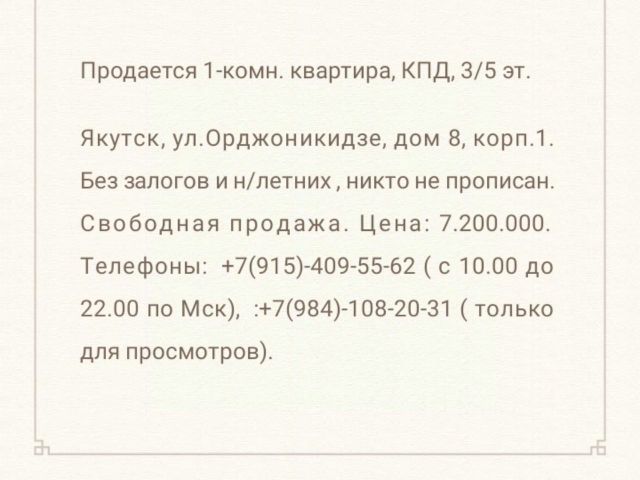 Однокомнатная квартира в центре города - 31,6 м.кв. Возведена внутренняя перегородка, отделяющая спальную зону от гостиной. 4 этаж, окна на 2 стороны. Кладовая "Тещина комната". Есть необходимая техника: Холодильник, СВЧ, стиральная машина, TV. Мебель и техника остаются. Один взрослый собственник, в квартире никто не прописан. Долговых обязательств по квартире нет. Без обременений.