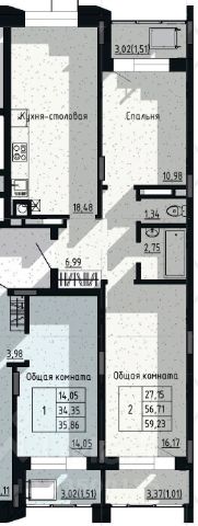 Продаётся 2-комнатная квартира в строящемся доме (Дом 1), срок сдачи: III-кв. 2026, общей площадью 56.73 кв.м., на 13 этаже. Новый жилой комплекс от Специализированного застройщика "Жилищно-строительная компания" расположен по адресу: г. Якутск по ул. Губина.