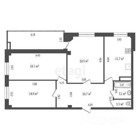 Общая площадь по выписке ЕГРН 68,4м2: комнаты 19,6; 17; 8,7; кухня 8,7; прихожая/коридор 8,8; туалет 1,1; ванная 2,2. Высота потолка 2,7м. Балкон 2,6м2, остеклен. Этаж 1/5. Окна на 2 стороны, угловая. Санузел раздельный, в кафеле. Натяжные потолки. Стеклопакеты. Счетчики ХГВС. Трубы водоотведения шумоизолированы. Встроенные шкафы от застройщика.