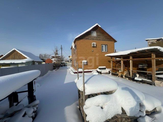 Дом двухэтажный деревянный, первый этаж материал брус, второй этаж каркасный, со всеми удобствами, 2007 года постройки. Площадь дома 122,3 м2, фундамент деревянные лежки (лиственница);