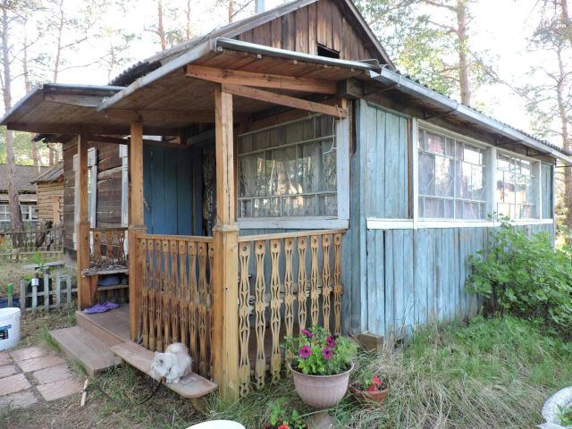 Возле дома молодые деревья (лиственница, сосна, березы), кусты красной смородины, черёмуха, малина, шиповник, грибница шампиньонов и маслят.