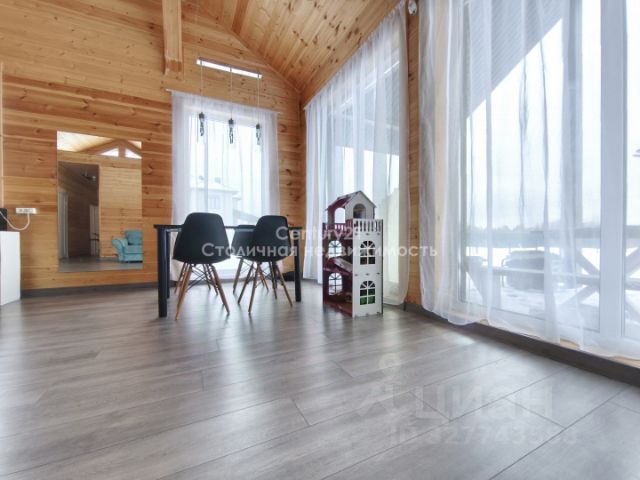 В доме реализована современная продуманная планировка- высокие потолки, второй свет, панорамные окна из которых открывается вид на участок.