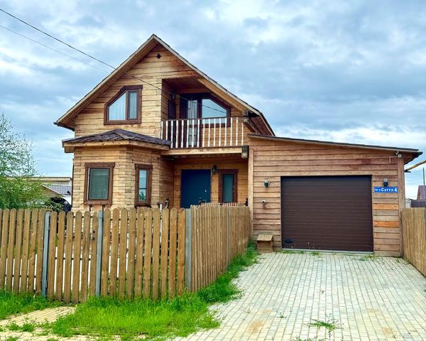 Спешите насладиться тихой жизнью в частном доме в коттеджном районе мкр Сайдам (Намский тракт). Отличная локация, недалеко от дороги. Закрытая охраняемая территория, въезд через шлагбаум. Микрорайон спроектирован по американской модели, широкие дороги, невысокие заборы вдоль улицы, дома расположены ближе к дороге что обеспечивает уютный и приватный задний дворик. 2 этажный уютный теплый дом с земельным участком общей площадью 7 соток. Площадь дома: 80 кв.м. Дом 2-этажный, материал стен брус, фундамент капитальный из бетона + опалубка. Год постройки 2017. Удобная планировка просторная кухня + гостиная, совмещенный санузел, 2 спальни на втором этаже. Мебель и техника вся остается новым хозяевам: кухонный гарнитур, техника, кондиционер, диван, камин, кровати итд На участке есть очень хорошая баня-бочка, мангальная зона с печкой, теплица, курятник, кладовая, есть место для установки бассейна и батута. Удобный гараж на 20 кв.м. с автоматическими воротами и заездом с улицы. Растет березка, шиповник, вдоль забора посажены елки. Весь участок облагорожен: на входной зоне выложена тротуарная плитка, передняя часть забетонирована, остальное отсыпано щебенкой. Все сделано очень добротно, аккуратно и по-хозяйски с любовью Дом и участок без долгов и обременений. Общая совместная собственность, материнский капитал не использован, доли несовершеннолетних нет. Проведена предпродажная подготовка, документы проверены и готовы к продаже. Причина продажи - переезд в другой город. Доп. описание: отопление газовое (котел Rinnai), септик 8 кубов, емкость для воды 2 куба. Интернет ТТК и Yota, телевидение НТВ+. Видеонаблюдение по периметру дома. Дом освобожден и не заморожен, полноценный вариант "заезжай и живи" Не упустите возможность приобрести дом мечты, который не требует дополнительных вложений * Эксклюзив NOVA-Недвижимость