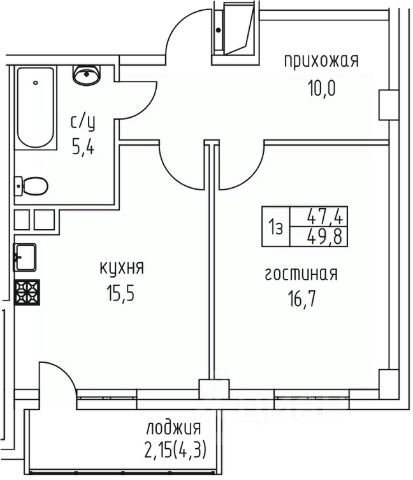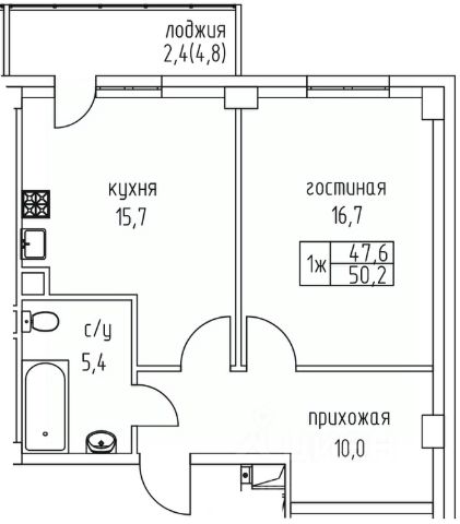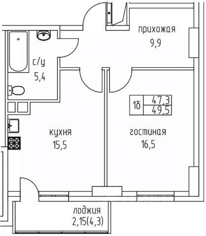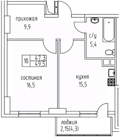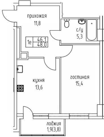 • ✅ Минимальная площадь: 42,6 м²