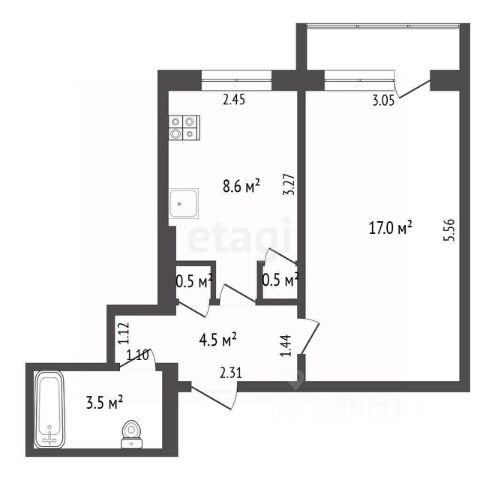 Две просторные спальни, кухня, зал - с видом во двор дома. Солнечная сторона! Совмещенный санузел.