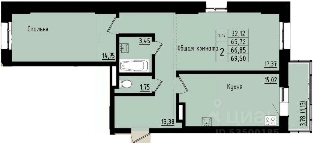 Продаётся 2-комнатная квартира в строящемся доме (Берег мечты), срок сдачи: IV-кв. 2026, общей площадью 66.85 кв.м., на 3 этаже. Новый жилой комплекс "Берег мечты" от Специализированного застройщика "СТК" расположен в г. Покровск на ул. Братьев Ксенофонтовых.