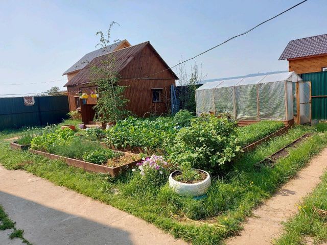 На территории плодоносит малина,чёрная и красная смородина.
