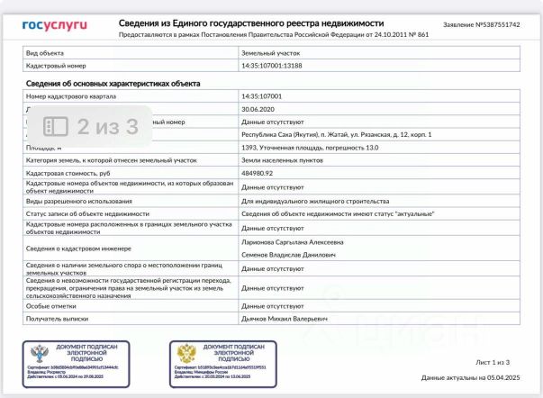 Покупай сейчас - плати потом! На данный объект доступна рассрочка на выгодных условиях СРОЧНАЯ ПРОДАЖА,есть возможность купить в РАССРОЧКУ БЕЗ ОБРЕМЕНЕНИЙ Продается участок с фундаментом в Жатае Участок 11 соток Фундаментная плита 14*24 м. можно возвести капитальный дом за 1 строительный сезон, без рисков усадки почвы; Газ и электричество на участке, в 50 м ведут круглогодичный водовод (в 25 г будет завершен); Хорошая дорога - до центра города в обычное время 25 минут на машине, если в час пик то минут 40 Есть все для комфортной жизни: бассейн, ДЮСШ, школа искусств, дом культуры, много детских площадок, своя лодочная, до школы и сада 5 мин. Гарантия безопасной сделки осуществляется компанией Этажи. Полное юридические сопровождение. Мы работаем со всеми банками города Якутска и по России . Поможем в одобрении ипотеки Код пользователя: 147132 Номер в базе: 7020400 Продаю земельный участок под ижс в городском округе Жатае республики Саха (Якутия).