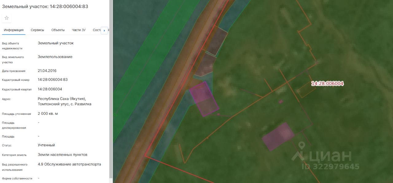 Лот 1 земельный участок из категории земель населенных пунктов с кадастровым номером 14:28:006004:83, общей площадью 2000 кв.м., расположенный по адресу: Республика Саха (Якутия), Томпонский улус, с. Развилка, с видом разрешенного использования: 4.9. Обслуживание автотранспорта.