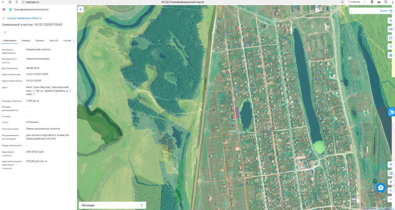 Право заключения договора аренды земельного участка, расположенного по адресу: Республика Саха (Якутия), Хангаласский улус, с. Ой, ул. Адама Скрябина, д. 1, корп. 1, с видом разрешенного использования: для ведения личного подсобного хозяйства (приусадебный земельный участок), площадью 1491 кв.м.