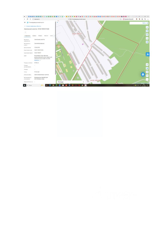 Данные получены с сайта ГИС Торги. Земельный участок площадью 47 кв.м, государственная собственность на который не разграничена, относящийся к категории земель "Земли населенных пунктов", расположенный по адресу: Россия, 678940, Республика Саха (Якутия), Алданский район, п. Нижний Куранах, район общих гаражей, з/у 696, с кадастровым номером 14:02:100127:696 с разрешенным использованием размещение гаражей для собственных нужд