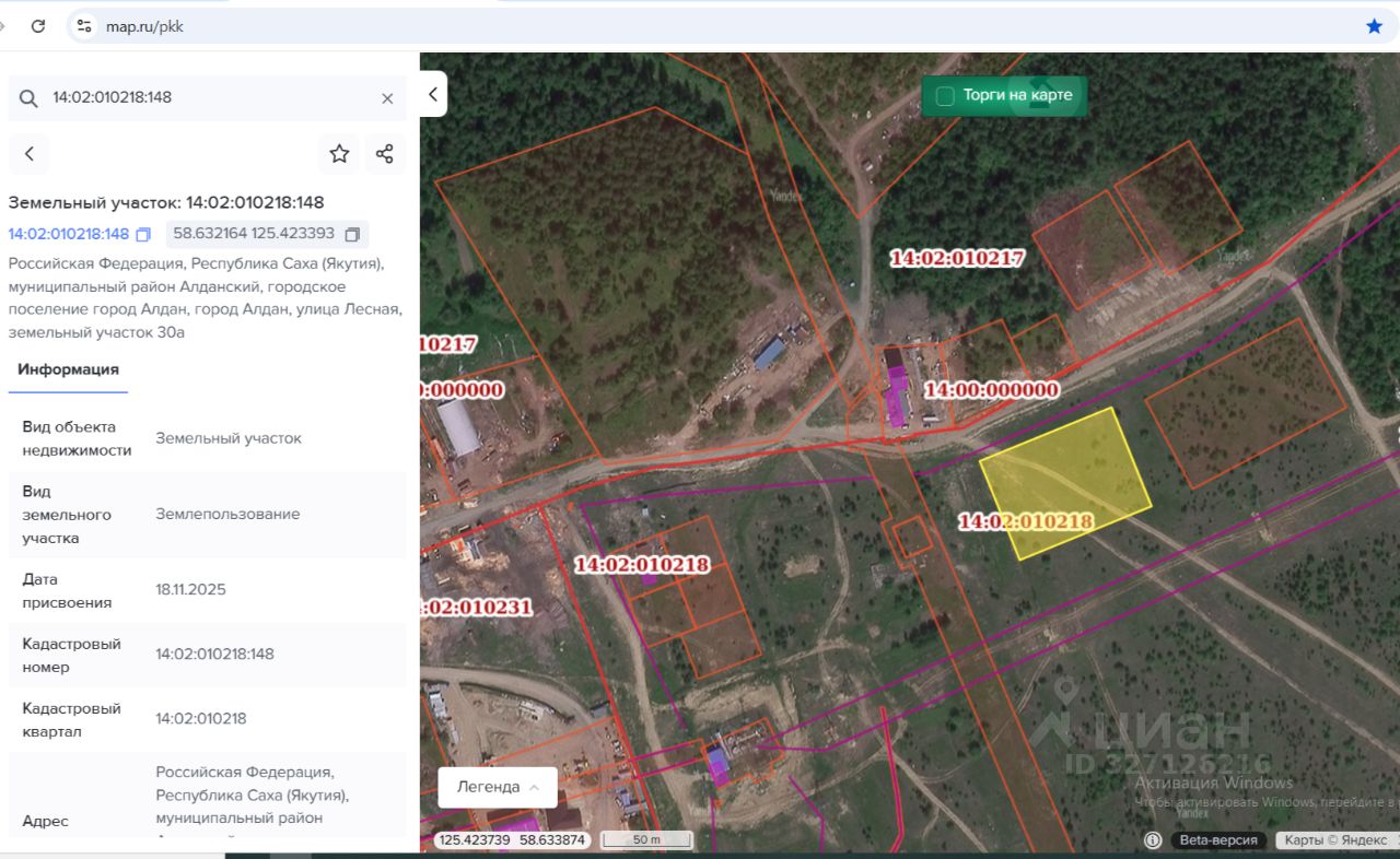 право аренды земельного участка, государственная собственность на который не разграничена, площадью 4999 кв. м., с кадастровым номером 14:02:010212:148, находящегося по адресу: Республика Саха (Якутия), Алданский район, г. Алдан, улица Лесная, земельный участок 30а. Разрешенное использование: склад