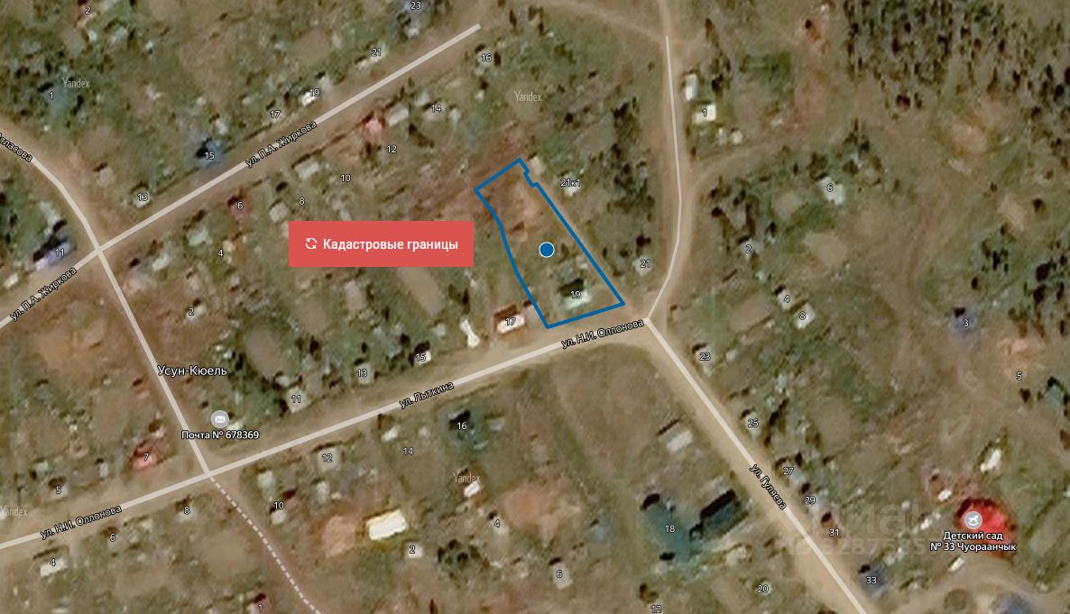 земельный участок из категории земель населенного пункта, с кадастровым номером 14:29:150001:443, площадью 3833 кв.м., с разрешенным использованием блокированная жилая застройка, с местоположением: Республика Саха (Якутия), Усть-Алданский район, сельское поселение Оспехский 1-й наслег, с. Усун-Куель, ул. Н.И. Оллонова, земельный участок 19