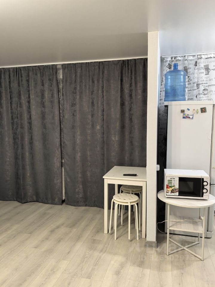 Студия выполнена с дизайнерским ремонтом, что создаёт современную и приятную атмосферу. В квартире есть вся необходимая мебель как на кухне, так и в комнате. Для вашего комфорта предусмотрена вся необходимая техника: холодильник, телевизор и стиральная машина. Совмещённый санузел оборудован ванной, что позволяет расслабиться после рабочего дня.