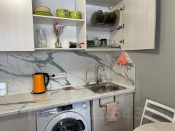 Квартира оснащена всем необходимым для комфортного проживания и отличного отдыха: кондиционер, двухспальная широкая кровать и раскладывающийся дивана в одной комнате, ещё один раскладывающийся диван в другой комнате. Всегда свежее, чистое постельное белье и полотенца, тапочки. Кухня с холодильником, электрической плиткой, микроволновкой, кухонными принадлежностями и посудой, чайником, фильтром для воды, стиральная машина. Для вашего удобства есть набор продуктов: чай, кофе, сахар, макароны, крупы. Телевизор, Wi-Fi. В ванной душевая, шампунь, гель для душа, фен, утюг , гладильная доска и сушилка для белья.