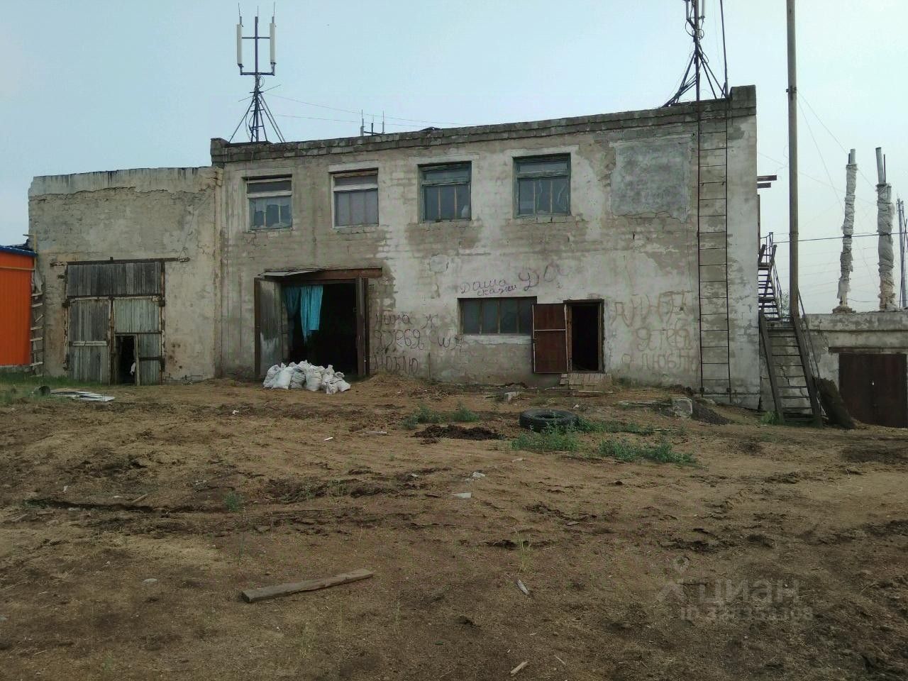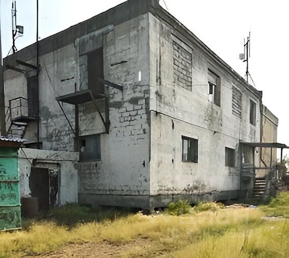 2-х этажное шлакоблочное здание на сваях, 460 кв.м, газ, эл.энергия 220/380в,75 квт, отопление местное, 2 гаражных бокса (высота 3,5 и 7 м ), земля 25 соток