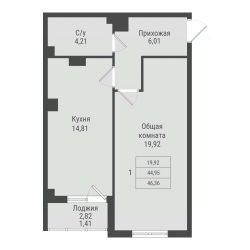 Продаётся 1-комнатная квартира в строящемся доме (дом 1, этап 1), срок сдачи: I-кв. 2026, общей площадью 46.36 кв.м., на 5 этаже. Новый жилой комплекс от Специализированного застройщика "ПАРК ПОБЕДЫ" расположен по адресу: г. Красноярск, по ул. Калинина.