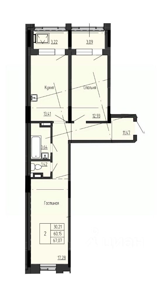 67,07 м²