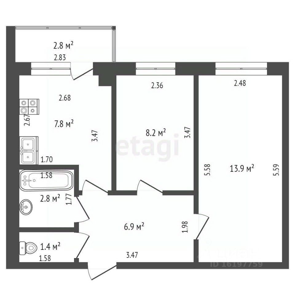 Площадь квартиры: 41 кв.м
