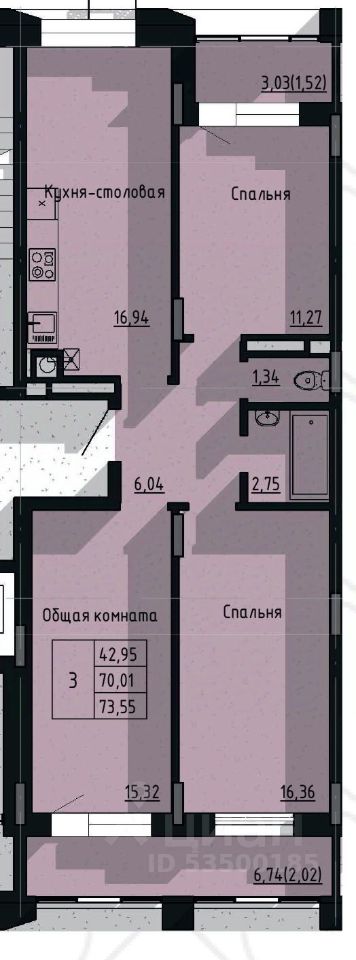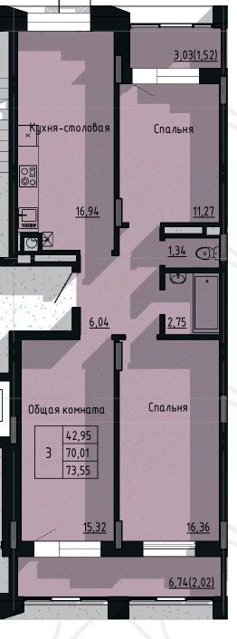 Продаётся 3-комнатная квартира в строящемся доме (Дом 4/7), срок сдачи: IV-кв. 2026, общей площадью 73.55 кв.м., на 3 этаже. Новый жилой комплекс "Сосновый бор" от Специализированного застройщика "СИТИ" расположен по адресу: г. Якутск, улица Три Сосны.
