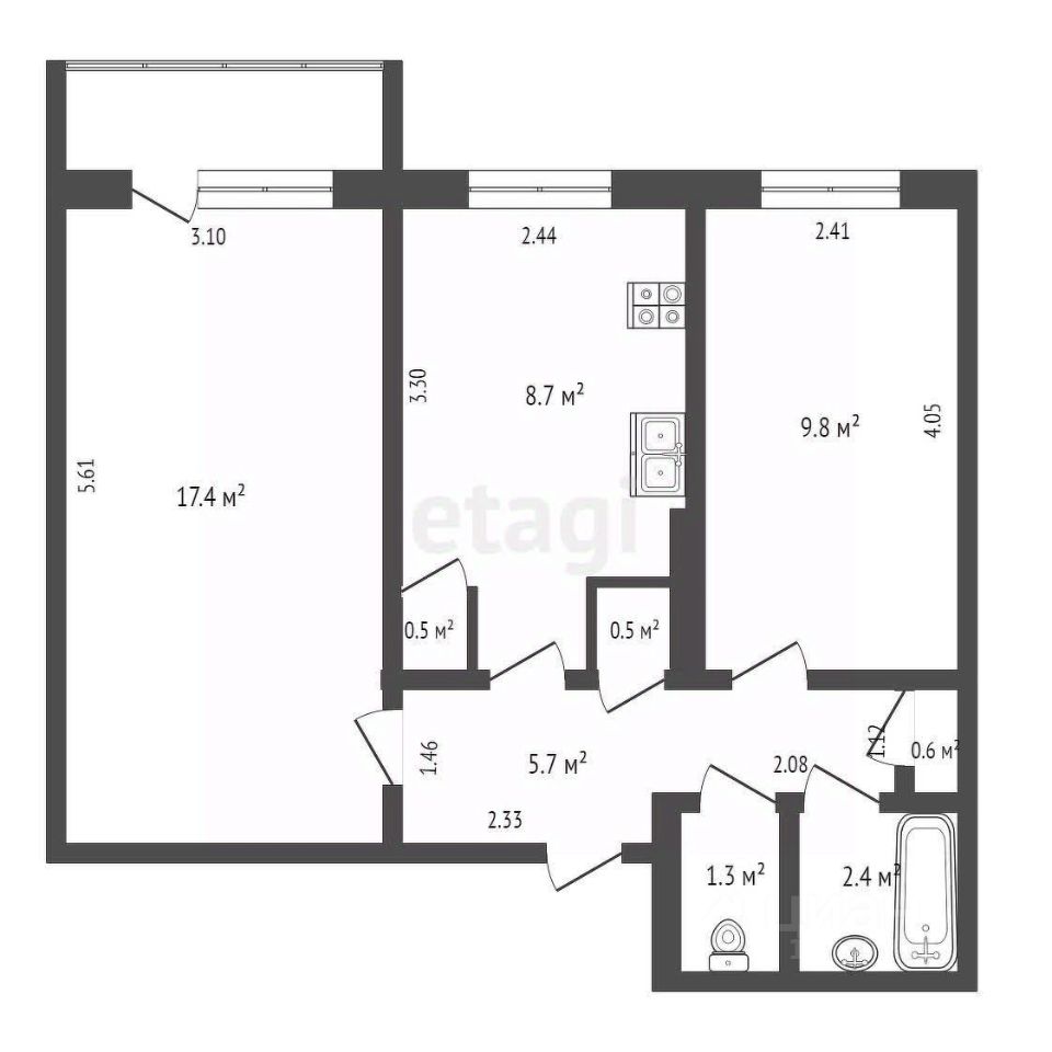 46,9 м²