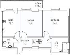 Продаётся 2-комнатная квартира в строящемся доме (Дом 16), срок сдачи: IV-кв. 2027, общей площадью 76.1 кв.м., на 3 этаже. Уверенность в застройщике это то, что отличает наш жилой комплекс от многих других. Проектом занимается известный, добросовестный и опытный застройщик - ООО строительная компания "Прометей", работающий на якутском рынке более 17 лет и выполнивший за свою деятельность много хороших и достойных проектов.