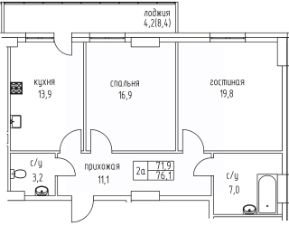 Продаётся 2-комнатная квартира в строящемся доме (Дом 16), срок сдачи: IV-кв. 2027, общей площадью 76.1 кв.м., на 4 этаже. Уверенность в застройщике это то, что отличает наш жилой комплекс от многих других. Проектом занимается известный, добросовестный и опытный застройщик - ООО строительная компания "Прометей", работающий на якутском рынке более 17 лет и выполнивший за свою деятельность много хороших и достойных проектов.