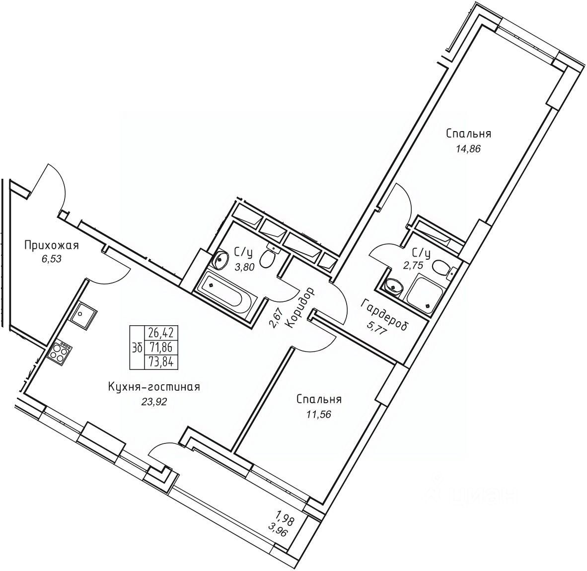 Продаётся 3-комнатная квартира в строящемся доме (Дом 15), срок сдачи: III-кв. 2027, общей площадью 73.84 кв.м., на 4 этаже. Уверенность в застройщике это то, что отличает наш жилой комплекс от многих других. Проектом занимается известный, добросовестный и опытный застройщик - ООО строительная компания "Прометей", работающий на якутском рынке более 17 лет и выполнивший за свою деятельность много хороших и достойных проектов.