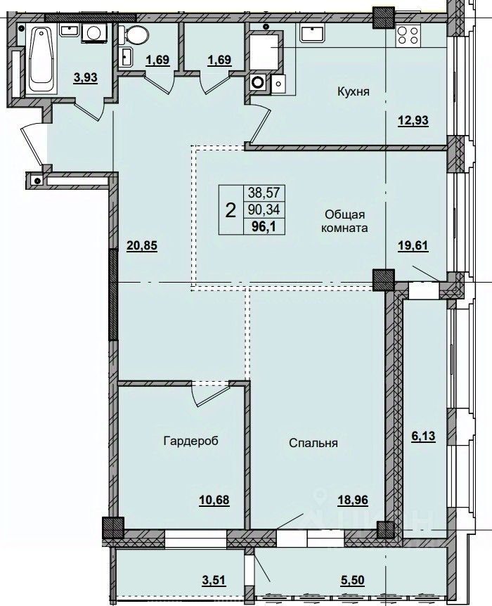 96,1 м²