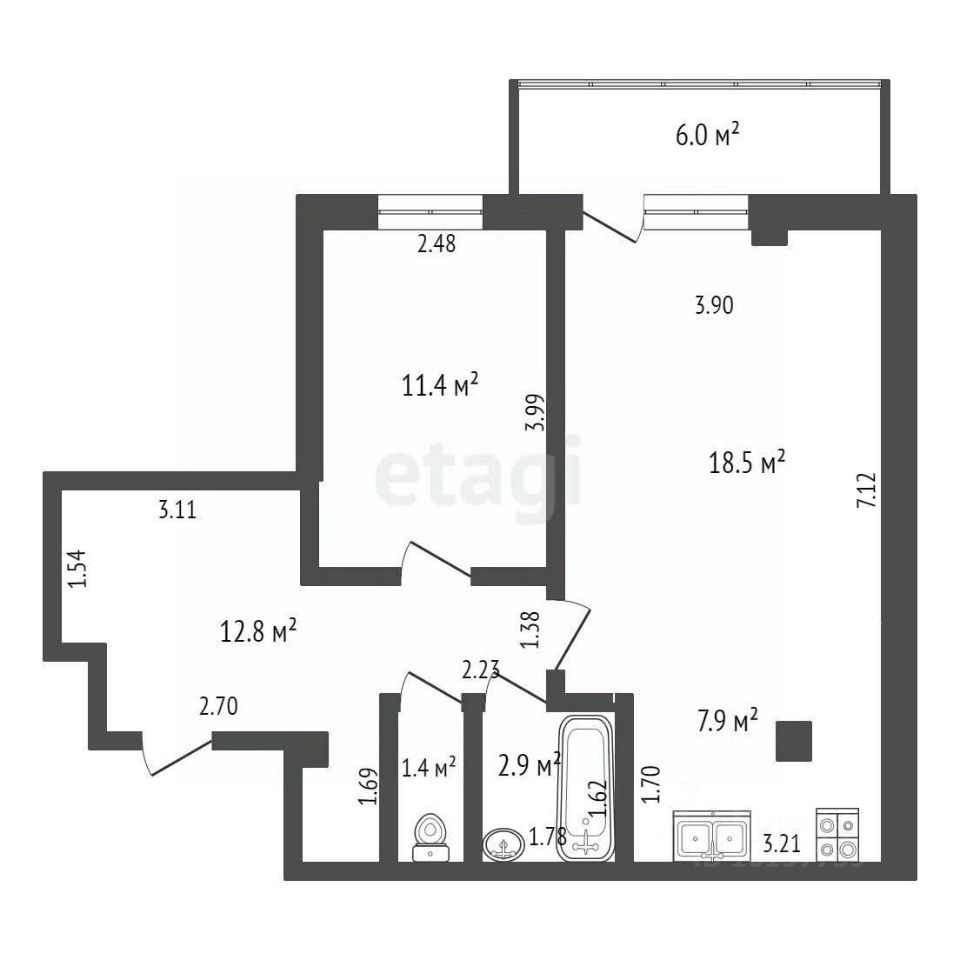 54,9 м²
