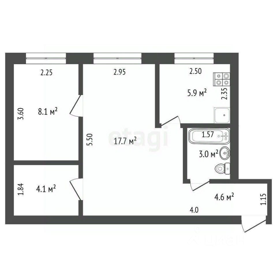 площадь 43,4 кв.м.