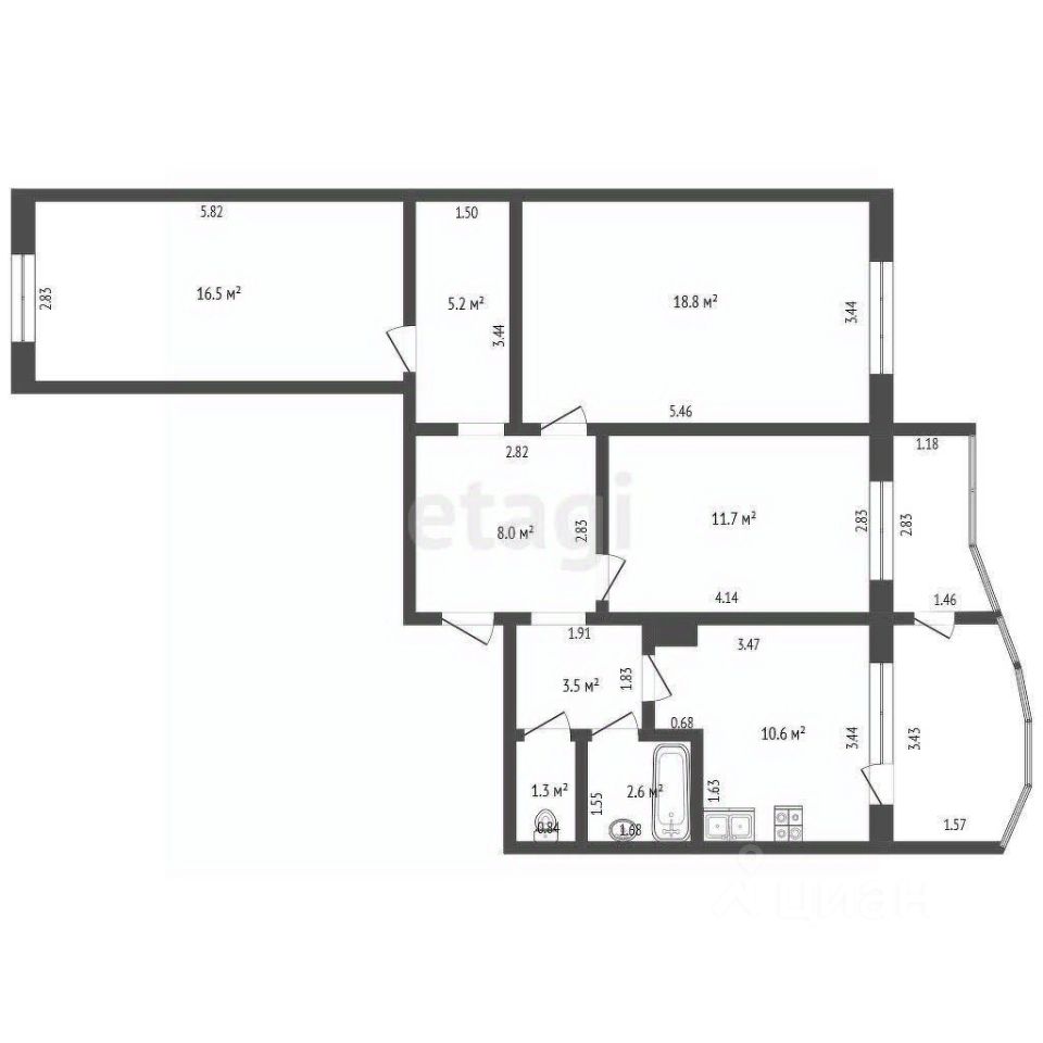 Общая площадь: 78,2 кв.м