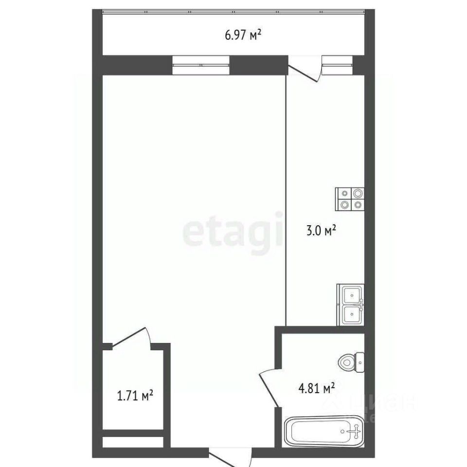 • Общая площадь: 42,4 м²