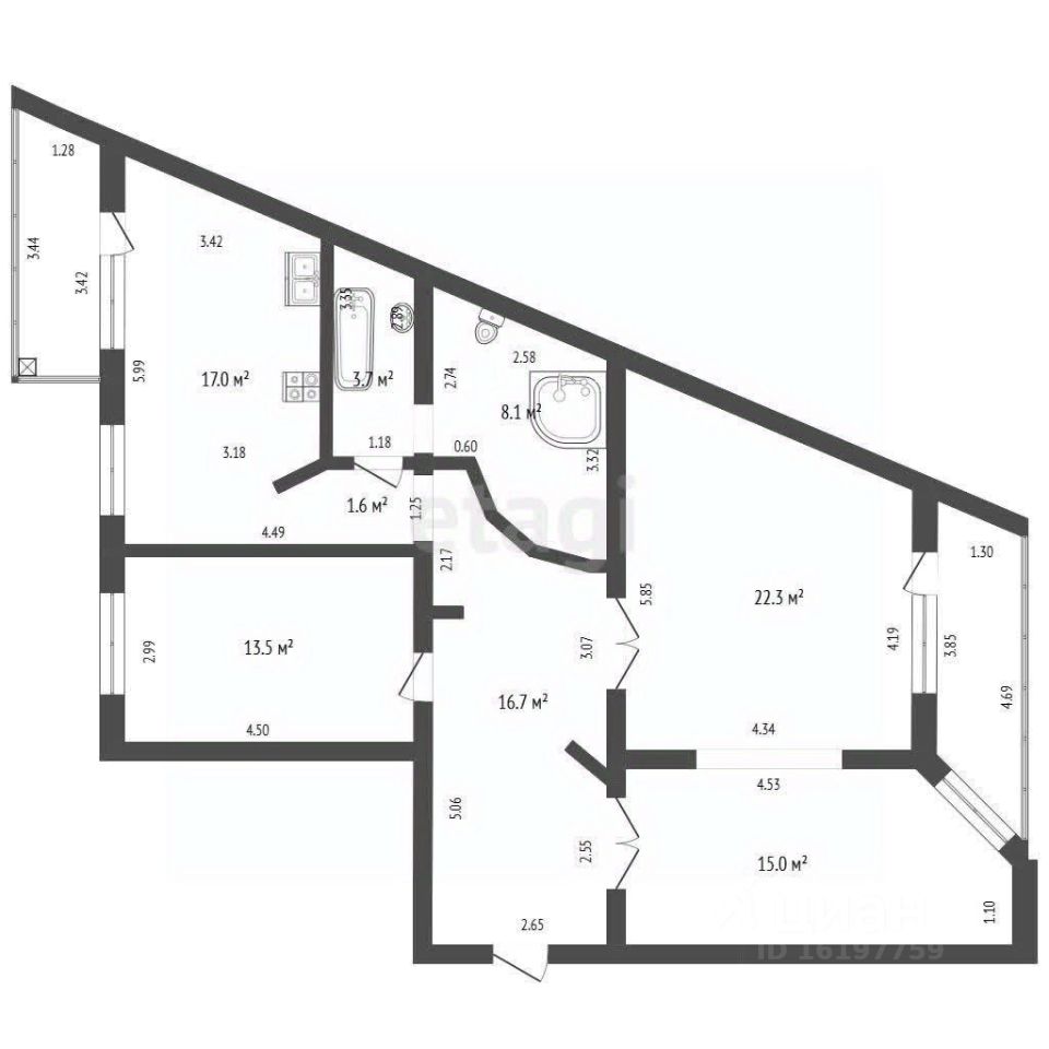 Приобретите уникальную 3-комнатную квартиру индивидуальной планировки с площадью 97,9 м2 с беспрепятственным видом