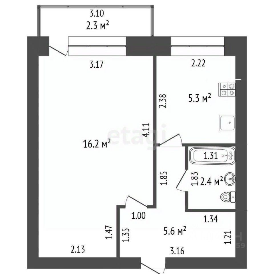 • Площадь: 29.5 м².