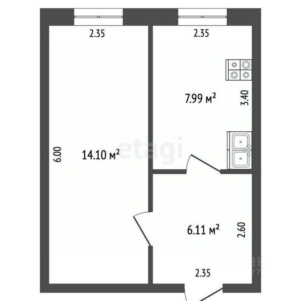 • Общая площадь: 28,4 м²