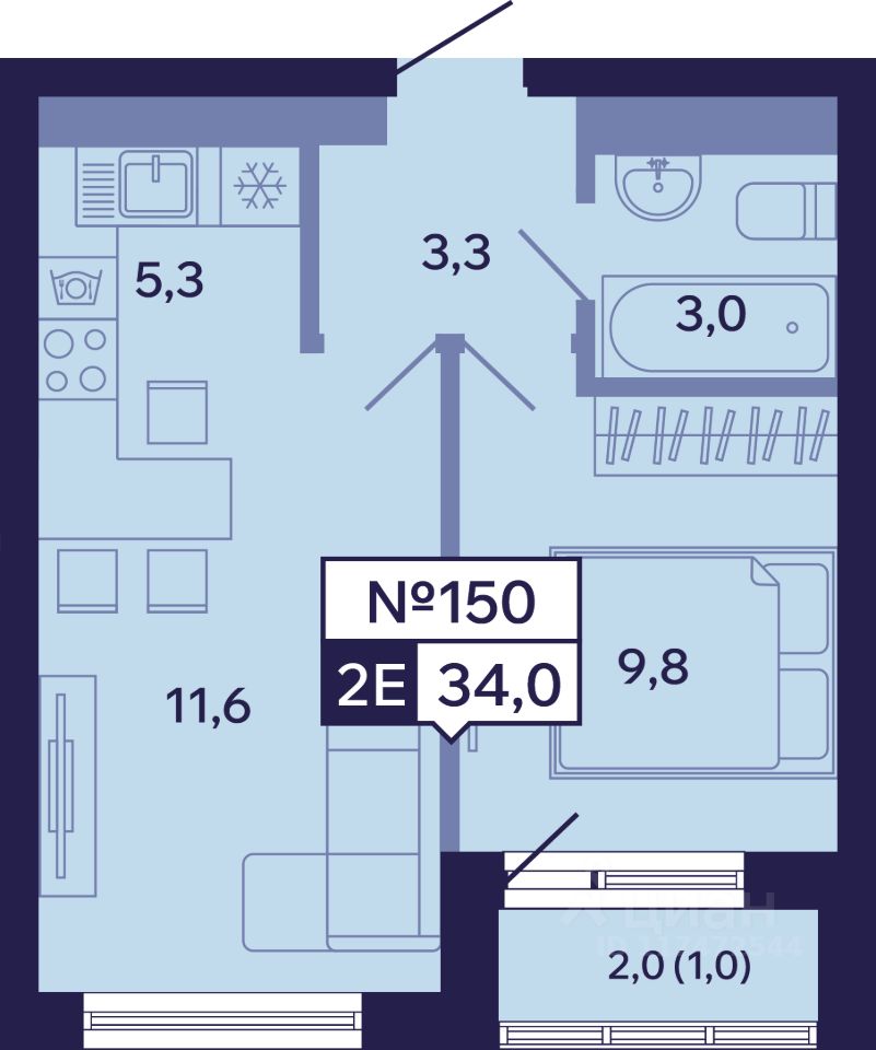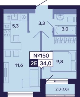 34 м²