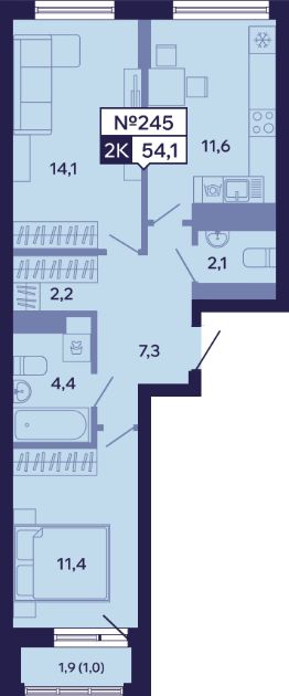 Общая площадь54,1 м²