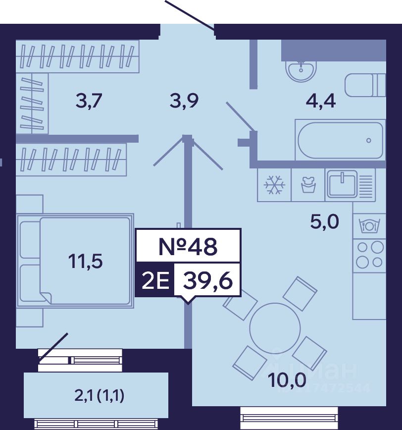 Общая площадь39,6 м²