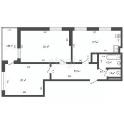 Планировка: кухня-гостиная + 3 отдельные спальни
