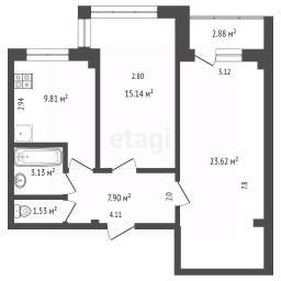 Общая площадь 62,57 кв.м.
