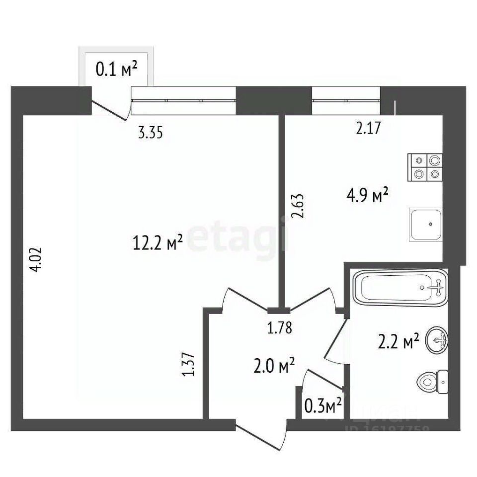 2,2 м²
