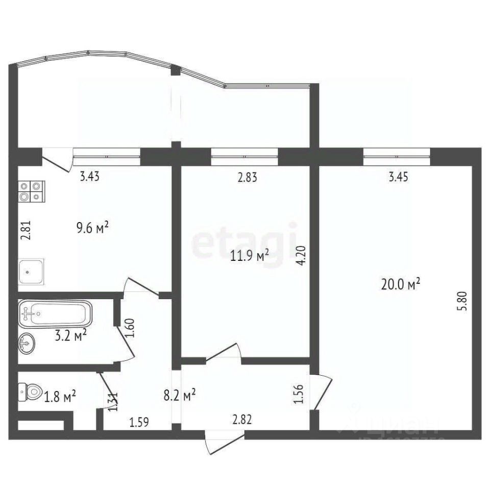 9,6 м²