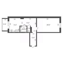 Просторная 1-комнатная квартира 112 серии, площадь 47.7 кв, район Старый город, ул. Чернышевского, 22/2