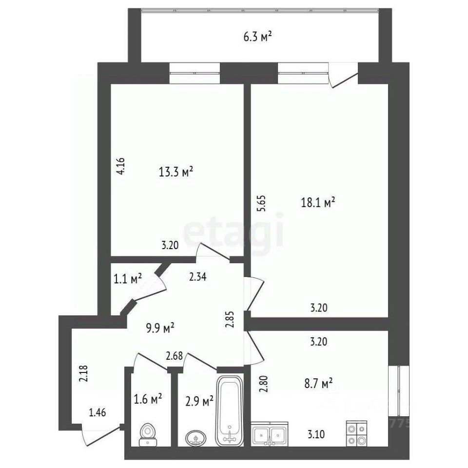 55,6 м²