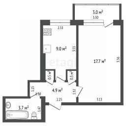 Общая площадь: 36,3 м²