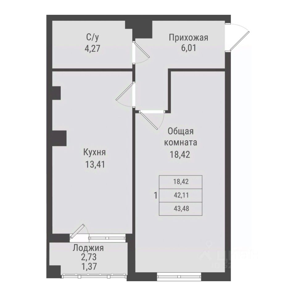 Продаётся 1-комнатная квартира в строящемся доме (дом 2, этап 4), срок сдачи: II-кв. 2030, общей площадью 43.48 кв.м., на 3 этаже. Новый жилой комплекс от Специализированного застройщика "ПАРК ПОБЕДЫ" расположен по адресу: г. Красноярск, по ул. Калинина.