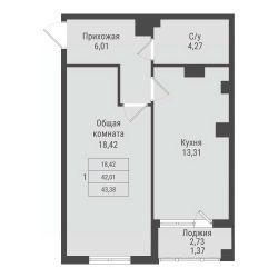 Продаётся 1-комнатная квартира в строящемся доме (дом 2, этап 5), срок сдачи: I-кв. 2032, общей площадью 43.38 кв.м., на 7 этаже. Новый жилой комплекс от Специализированного застройщика "ПАРК ПОБЕДЫ" расположен по адресу: г. Красноярск, по ул. Калинина.