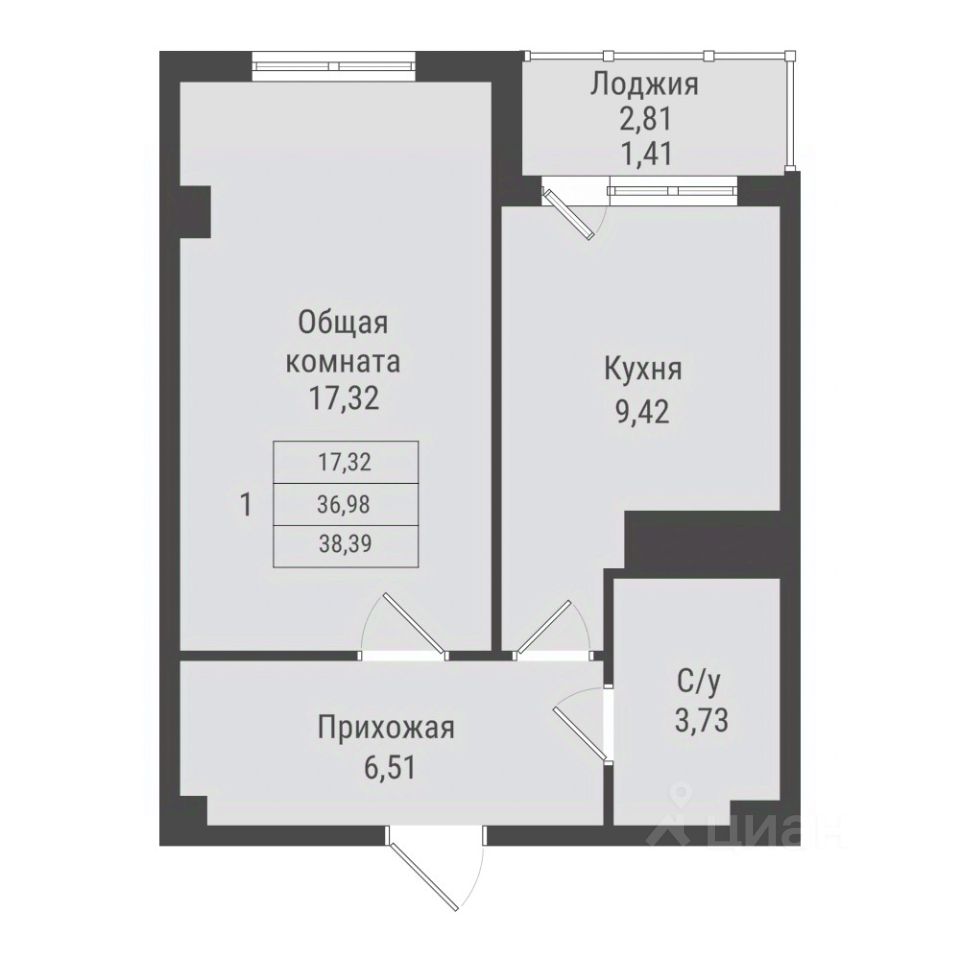 Общая площадь38,39 м²